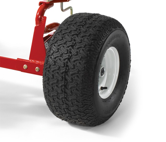 Duże flotacyjne opony nie ugniatają gleby i mają lepszą trakcję, aby ochronić kosiarkę przed ewentualnym uszkodzeniem.