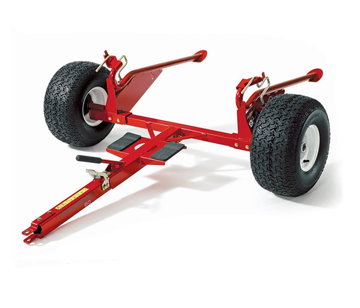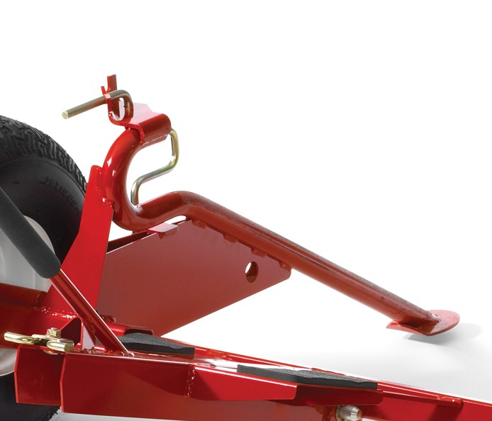 Małe stacjonarne kółka pozwalają na łatwy i szybki załadunek kosiarki na przyczepę.